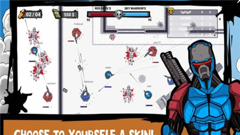 《前线火拼 SketchWar》是一款联网的射击游戏。游戏里玩家需要扮演红蓝队伍之一,和队友紧密配合击毙敌军所有敌人。并且可以搜刮房间里的金钱用来购买更好的武器设备,喜欢接受挑战的话就快来下载吧!