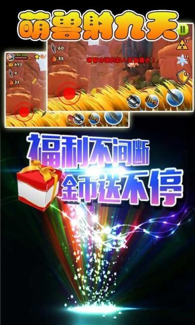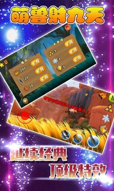 萌兽射九天是一款休闲的空中射击游戏,用萌萌的小兽作为主角,在空中自由飞行射击消灭敌人,还燃烧弹等诸多强力道具,毁天灭地的杀伤力,绚烂的技能特效,华丽的飞行射击画面,和爽快的战斗流程,新颖的萌兽射击玩法,让人完全停不下来。