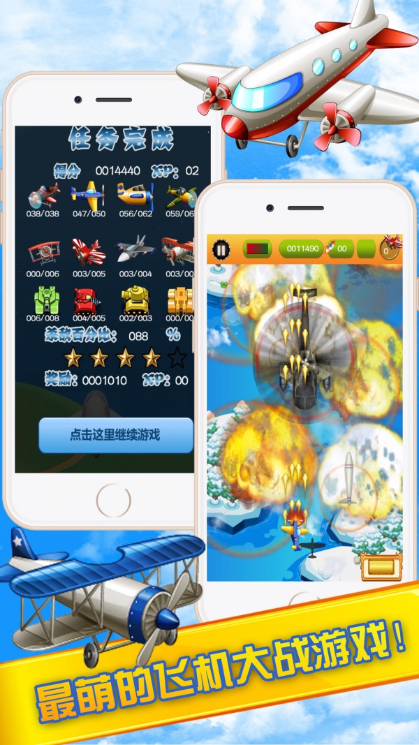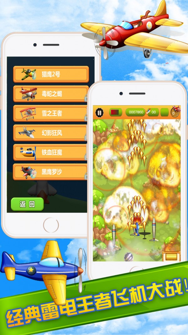 2.类型各异的卡通飞机供玩家选择来雷电打飞机大战。