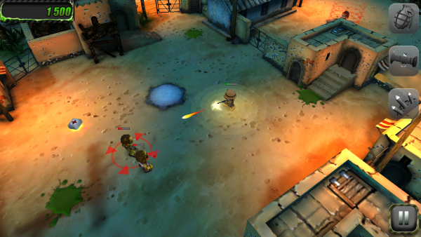 游戏刚开始的绿头小僵尸是很脆的,一枪爆头,拿起你的武器将它们打成渣渣吧,游戏得高分的一个关键就是你的连续击杀combo数了,所以不到危急时刻,就用你的机枪一直扫吧,爆炸效果最后再用。
