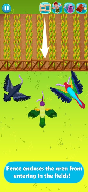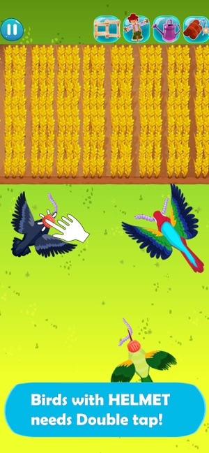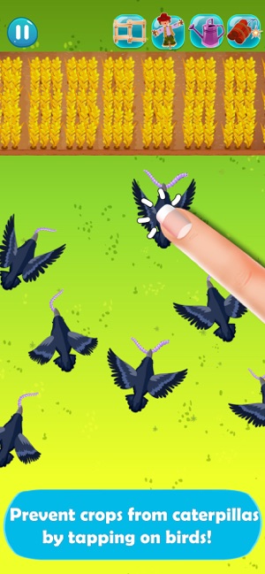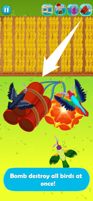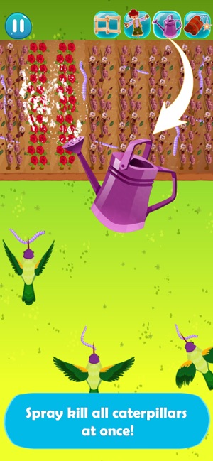 当蠕虫摧毁你的土地时,不要让任何鸟逃脱,使用喷雾保护毛虫的田地,使用炸弹杀死屏幕上的所有鸟类。