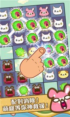 额,满怀期望的以为是个宠物游戏,结果是个消除游戏?《救救萌宠》是一款经典的消消乐玩法的游戏,玩家只需要将三个以上相同的萌宠连接在一起就可以消除,萌宠们就会被你解救出来。趣味的连接消除体验,记得要躲避障碍物哦。超多的关卡等你来挑战,超大的游戏世界等你来探索,感兴趣的小伙伴可千万不要错过哦!