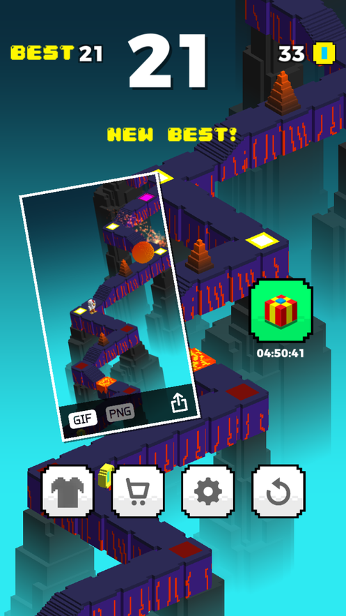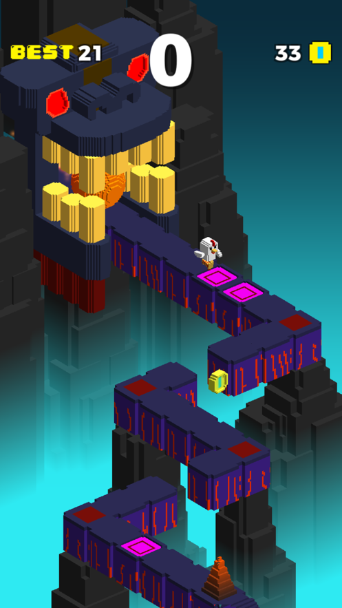 1、一款3D像素风的游戏,在游戏中,通过跳跃前进,危险很多,前有陷阱,后有滚石。