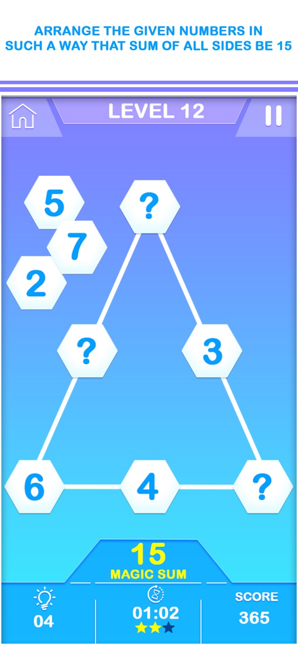 休闲游戏是一种非常受玩家欢迎的游戏类型,因为休闲游戏不会让玩家获得多余的压力,休闲游戏易上手的特性使得所有玩家都能进行轻松他的游戏,这一点可以说是顺应趋势,因为众所周知越简单的游戏越是能积累大量的玩家。《魔力三角》就是这样一款游戏,喜欢休闲游戏就来下载体验一下吧。