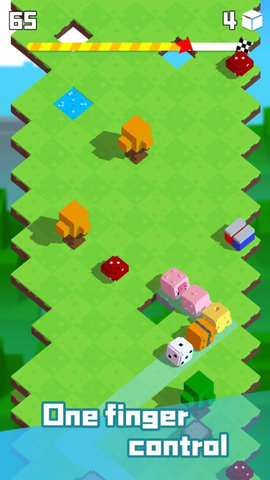 在前进过程中,玩家会发现有一些方块的上方带有“help”字样,这时便可选择撞击一下该方块,之后它便成了你的同类会跟随着一起前进。随着游戏的深入,各位的方块队伍会越来越长,犹如一条贪吃蛇一样。队伍的庞大也会为玩家带来一定的优势,每一个方块都代表着一条生命,前面的方块坠入陷阱之后剩下的方块能够继续进行游戏。但是,一般情况下方块队伍不会过长,因为游戏实在太虐心了,玩家很难坚持太长时间。