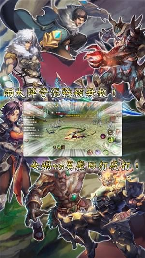 异魔频频入侵,女娲奋起对抗!战场为两者阵营的中心「一水隔天」,玩家们可以随时随地前往一水隔天,只要巧遇敌阵之人,便可立刻发起进攻。如觉不敌,可发起号召,同营玩家便会收到通知,马上前来支援。如实力强劲者,更会随时成为他人的教世主,保护友方玩家。