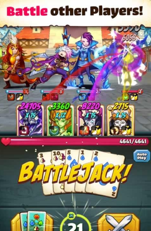 《 Battlejack》是一款角色扮演类游戏。收集数百个传说中的英雄,从事高风险高回报的战斗,帮助英雄解放,加入工会和各种史诗级战斗,收集与21点相同的卡片。梦幻音乐的冒险在等着你,今天就在战场上开启你的旅程吧!
