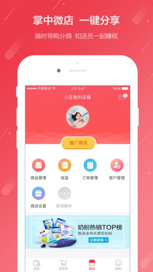 在手机版你能拥有自己的线上跨境商城,不需要打款、不需要压货,你出售商品后即可获得佣金,统一发货,并有专属客服解答各种问题。让你轻松获得交易增量。
