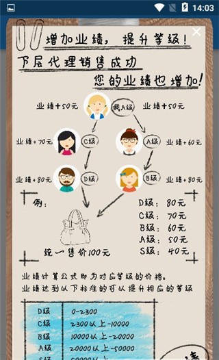 【利润循环上升】拿货价按代理级别计算。下层代理越多,业绩增长越快,等级提升越快,拿货价越低。循环上升的盈利模式保证代理的最大利润。
