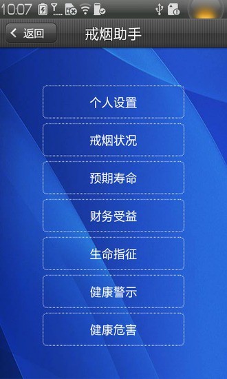 蓝白戒烟是一款实用性的戒烟监控工具,实时的记录你的戒烟进程。趋势图的而健康分析,为你展现你的戒烟成果。实时的为你戒烟提供服务,智能监看提醒功能,让你对自己的戒烟充满信心。