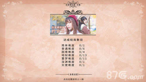 游戏中玩家将选择不同的难度和不同的妹子进行谈恋爱,根据玩家选择不同而获得不同的男友称号,游戏含有丰富的场景和妹子,流程不长,玩家可以试图多次尝试不同的选项来达成不同的结局。