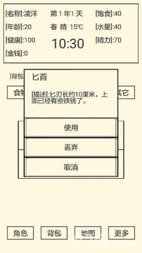 流浪人生2是一款由凌洋工作室出品的系列游戏续作,在游戏中,玩家将扮演一名流浪汉,你需要在这个虚拟的世界中努力生存下去。你会遇到各种不同的事情,可能对你的身份谜题有帮助。丰富的游戏剧情,各种不一样的事件需要你做出最为正确的选择,这将影响到结果。各种场合,有街道、健身房、超市以及别墅等,将你需要的物品装在背包里面,这会对你很有帮助。