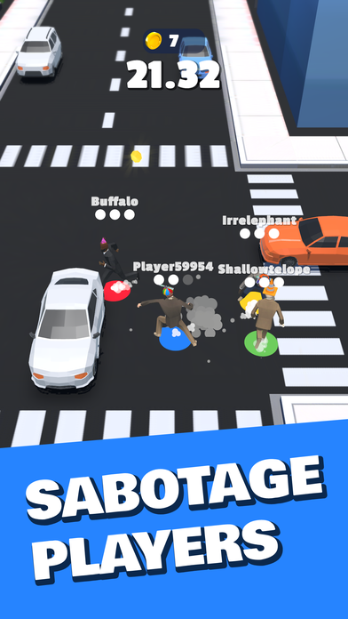 1、玩家需要做的是避免车辆的撞击,并推动其他玩家被车撞,成为最终的赢家。