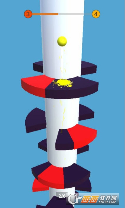 螺旋球跳跃是一款考验敏捷反应力的跳跃躲避游戏,在螺旋塔上一个小球正在不断通过跳跃攀爬,螺旋塔上有红色危险区域还有空格陷阱,操纵小球在不断变换的阻碍之中顺利跳跃上升就是游戏的主要玩法。
