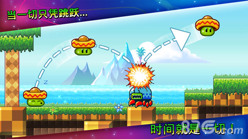 《豆豆大梦想》游戏的场景地图非常的复杂,而且都有非常多的机关,怪物也是存在的哦~但是怪物一般都很好消灭,玩家可以一脚踩死一个,或者跳过怪物都可以。每一个关卡都有一只隐藏的小动物可以收集,每一个关卡有3个挑战的要求。游戏中玩家需要帮助绿豆先生蹦蹦跳跳一路闯关,除了一般的上下左右操作外,还有一个特殊技能够向前猛冲一段距离,此动作可以在悬空状态下完成,当然了,道具是必不可少的,利用道具来配合再次跳跃的机会,然后通过那些所有的障碍。