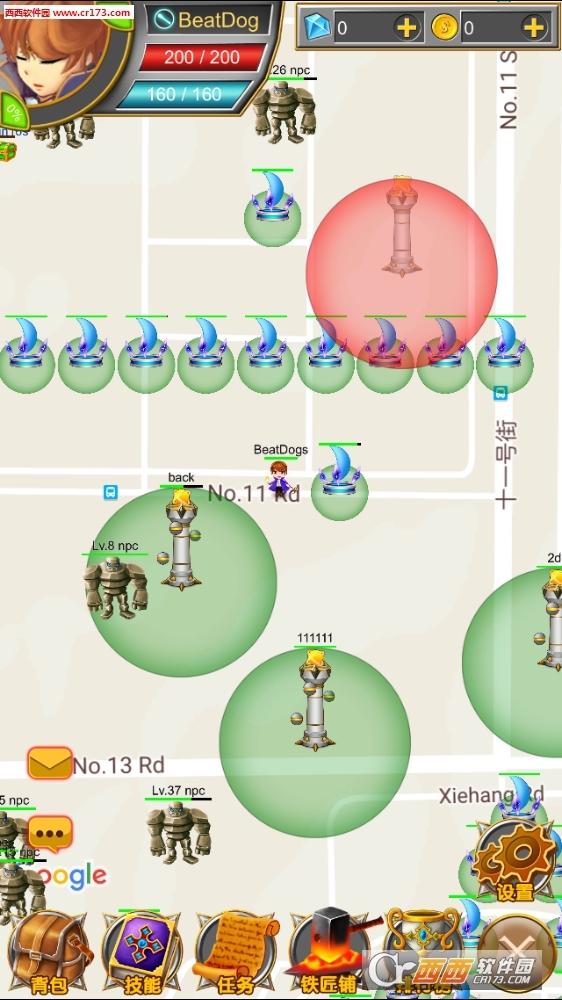 游戏整体以真实地图为基本,不断调整、改变传统的游戏设定,力求找出最适合LBS类型游戏的设计方案。游戏内容上鼓励玩家形成“控制区域”,极大减少LBS游戏特有的出行成本;RPG和塔防元素相互融合,使游戏内容丰富多变。