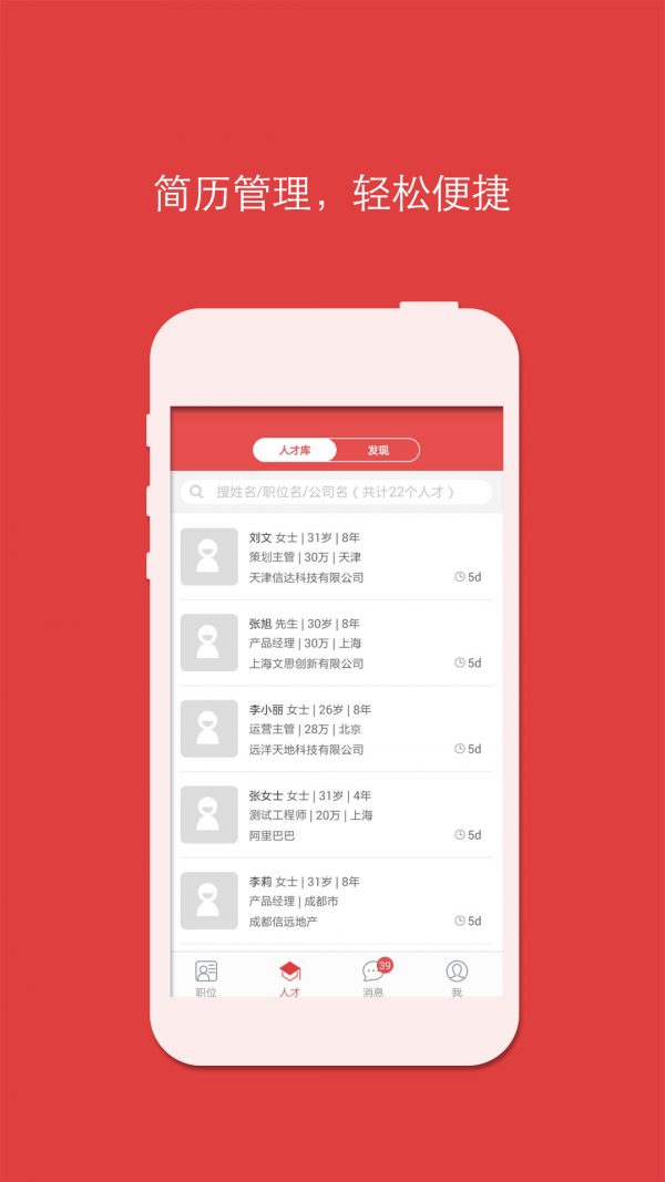 2.简历管理,轻松便捷,为您手中的简历匹配职位,简历变现不是问题