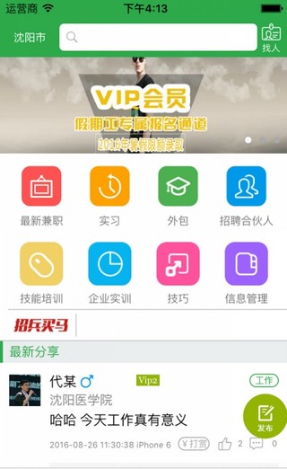 不仅仅是兼职,这是您的社会实践档案。免费、真实、高效。大学生人才数据的发起者。择优报名、择优录取,招聘方与求职者高效对接,全程管理,高效体验。