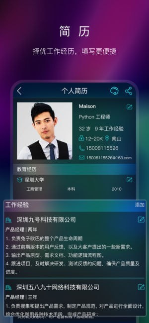1.会员可享受上传多张照片,编辑完个人信息自动生成精美简历
