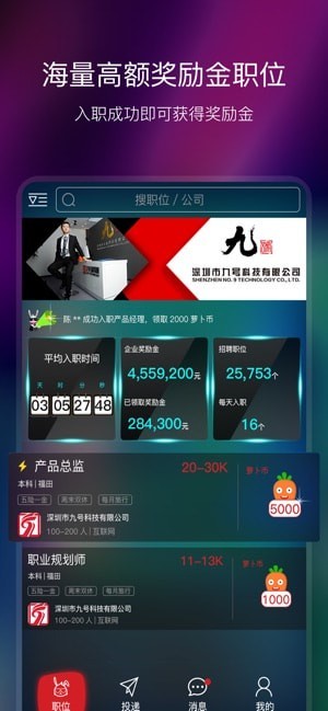 【入职奖励】一旦入职成功,即可获得相应的职位奖励金
