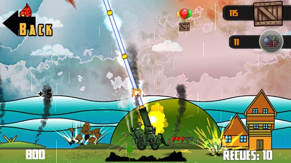 你参与一项救援任务,你需要将飞落的火山石头全部击毁。你能否保护生活在火山区的人民?