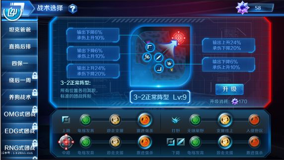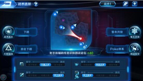 STEP4:如何选择最佳战术,所向披靡?战术系统是针对整个队伍打法影响的一个战斗强化系统,还是以选手为核心来制定的。还是上面四人保Weixiao的例子,战术核心肯定是选择以下路为主,打野方向为多游走下路,保证下路发育,下路的风格以保守为主,尽量开出Weixiao的被动技能。