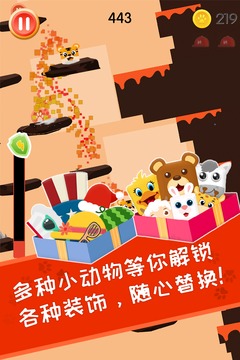 控制你的小动物,在台阶上快乐地跳跃,躲避各种机关障碍,穿过不同的场景,努力达到前所未有的高度!