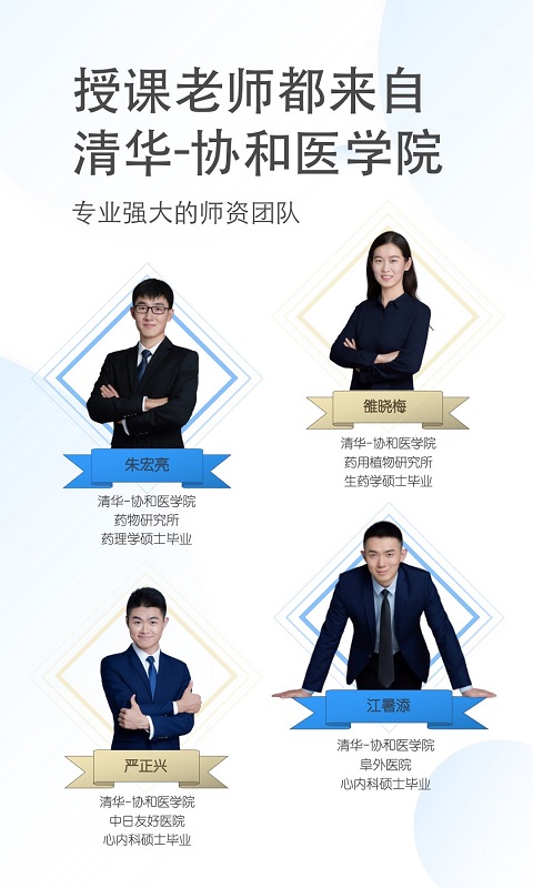 2.授课老师全部来自清华-协和医学院,拥有实力雄厚的师资团队。