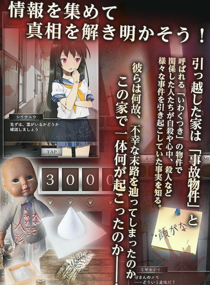 日式的恐怖生存解谜类的游戏,一行人为了生活而搬入了廉价凶宅,你需要在这里协助他们寻找真相,避免被恶灵害死的悲惨命运!