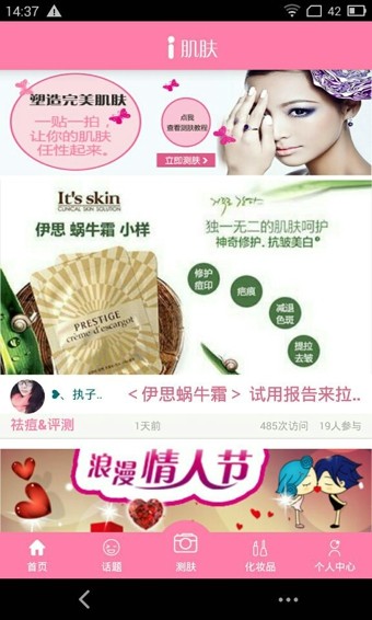 i肌肤,由北京爱肌肤科技有限公司荣誉出品。i肌肤由“皮肤测试卡”和“手机APP”两部分组成。使用APP中的测试皮肤功能,需要配合皮肤测试卡使用;用户也可以单独使用APP里面的其他功能,包括:达人社交和论坛。