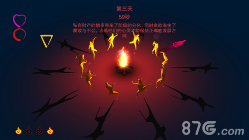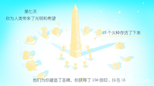 火种是一款生存益智类游戏。玩法是用手指在屏幕上画出不同的符号发动神力(pc端用鼠标操作)。对抗邪恶并帮助你的子民繁衍生息,原始人类就围绕着篝火载歌载舞,这个画面成为了游戏设计思路的核心。以此为基础,虚构了一个故事背景,善与恶的对抗作为矛盾点,通过求爱的方式产生新的人口繁衍生息,但邪恶会滋生于光明照射不到的阴影中,玩家扮演的神则需要消耗信仰绘制不同的神符来对应这些困难。