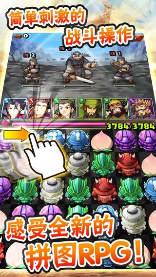 拼战三国志(又称三国志puzzle大战)是一款由盛大代理的消除类RPG游戏,游戏以三国为背景而展开,其玩法将RPG与消除的完美结合,并配上色彩鲜艳的可爱人物造型,使得该游戏深受年龄层玩家的喜爱。游戏中玩家将可挑选三国中的任意喜爱的将领来展开游戏,其战斗效果相当有特色,当玩家正确消除了同类型元素后,该元素效果便将立即反应到场景中,其呈现出来的立体感与诸多同类型作品相比都要更加出色,并且游戏也加入了众多策略元素,对武将属性与技能合理的运用也是该游戏的重点之一,喜欢的玩家就赶快来感受下吧。