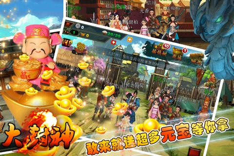 大封神手游是一款封神题材的RPG策略卡牌对战手机游戏,我左手持神兵、右手杏黄旗、身穿八卦紫绶仙衣、头戴五角花冠、胯下麒麟神兽,周身紫气护体,前头哪吒开道、后有姜子牙殿后、杨戬在一边跟班随侍,怀抱妲己妹妹,你要问我要干啥?我去横扫万仙阵,这就是《大封神》!你来封榜你来定,封神路等你来闯!