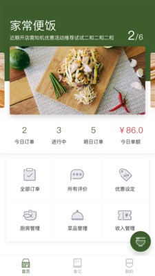 家常便饭app是一款美食类软件,通过家常便饭app可以轻松开店赚钱,为广大用户提供有家的味道的美食,还可以随时在线与烹饪达人切磋交流,快速提升自己的厨艺。
