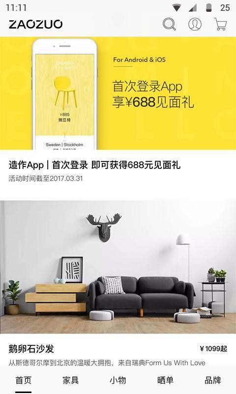造作app是一款网络购物应用,是个家具定制服务平台。此外通过造作app你还能查阅产品信息,了解店铺详情,以及一键订购产品等。