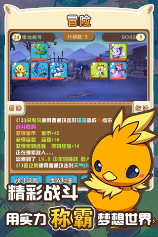 皮卡丘挂机是一款以人气动漫作品“神奇宝贝”为题材打造的放置类挂机RPG手机游戏。Q版风格配合新奇多样的玩法,为玩家倾情呈现精彩纷呈Q萌宠物世界;经典的剧情副本设定,耳熟能详的BOSS登场,华丽酷炫装备技能;宠物小精灵中百变的小伙伴们正在《皮卡丘挂机》中等待你的召唤!皮卡丘挂机安卓版下载奉上,让你随时随地体验到最畅快最轻松的宠物精灵战斗。