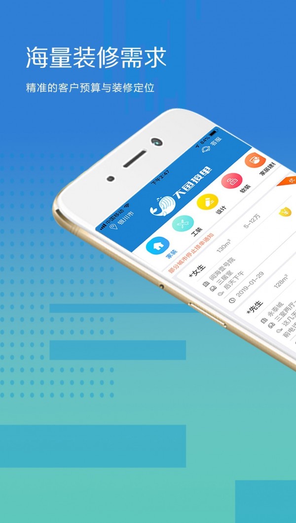 app软件是一款为装修公司、室内设计师、装修工长、工人师傅等装修服务商提供业主需求信息的平台。