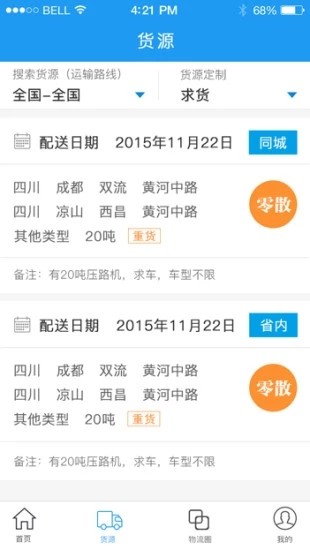 3、零单货源:根据货源大小智能拼车,加强司机运输效率;