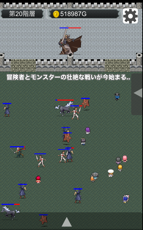 以魔王城下为舞台的怪物和勇者为题材的无尽战斗游戏,打倒怪物,获得有用的强化品和升级道具