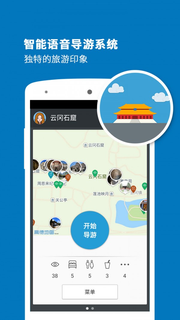 云冈石窟导游app是一款旅游出行服务软件,提供智能语音导游服务功能,让你不仅可以了解每个景点的信息,还可以避免迷路,还有更多旅游攻略,旅游服务等你来体验。