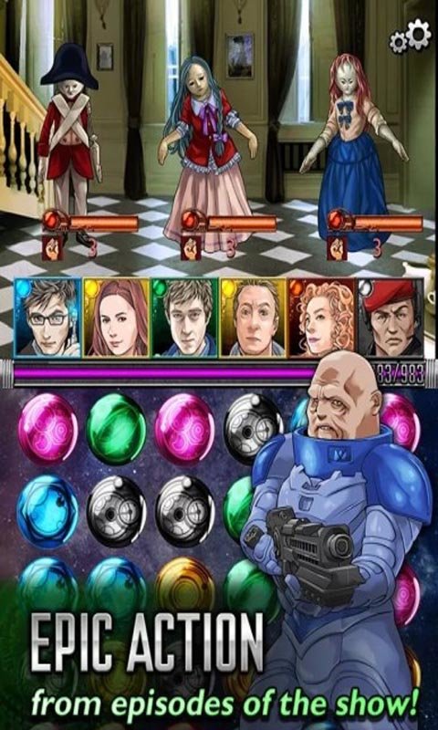神秘博士之遗产安卓版是一款有趣的消除卡牌类回合制休闲益智游戏!在游戏中玩家可以亲身体验到电视剧中的冒险旅程,选择自己喜爱的同伴来组建一个队伍,然后率领这个小队去和那些臭名昭着的坏角色作战。游戏初步涵盖了最新两季“神秘博士”的故事内容,而之后游戏的开发团队也将继续努力把更多的内容添加到“神秘博士遗产”中去。