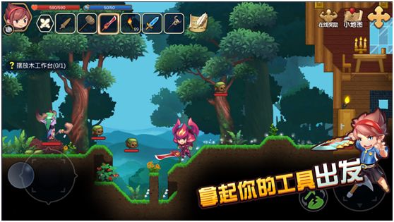 游戏中更有小野怪、BOSS等冒险难关,等待大家的挑战,掉落的物品都是建造所需要的,想合成更高等级的道具物品只有打败怪兽。