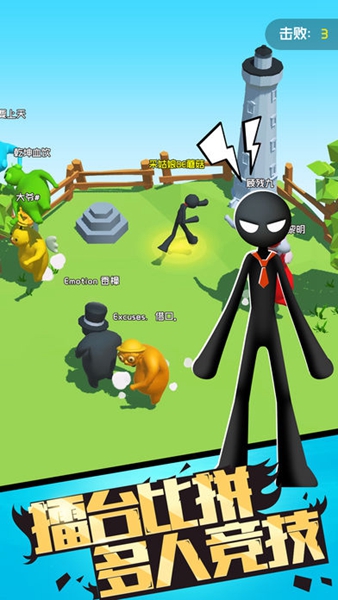 1、游戏中有许多火柴人角色,他们有不同的攻击方法,玩家可以随意选择。