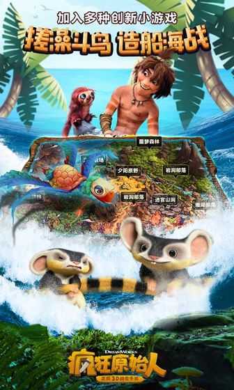 根据同名动画电影改编而来的精品游戏,画面是由梦工厂严格把关,品质有保障!相信能够带给玩家朋友们一个真实还原的石器时代,让玩家朋友们来上一场疯狂的史前冒险。