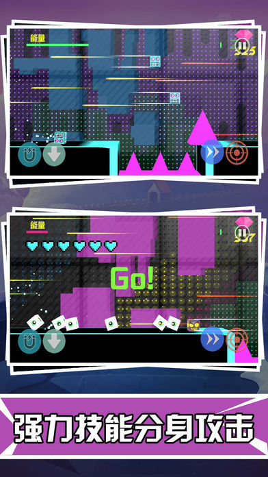方块跳动,能连续跳跃两次,来迎接新的挑战,提高反应力,享受游戏乐趣吧!