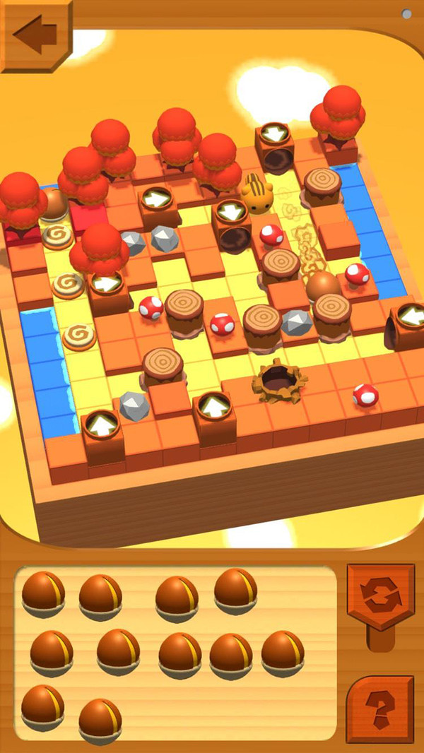 卡通可爱的益智游戏,玩家在滚动的小松鼠想帮助松鼠回家,你可以用橡子帮你,因为松鼠不能走路,只能用滚动的方式把它送回巢穴,测试玩家的策略和脑力能力。