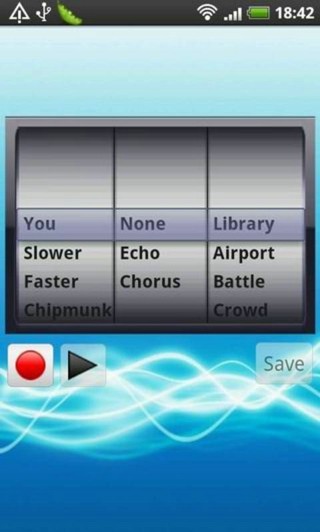 -添加效果:合唱,ECHO-添加背景声音:机场,战场,人群中,RAIN,街道,飞机-改变你讲话的速度!记录自己,然后改变你的声音。选择多种声音和效果。您还可以更改背景声音,使声音仿佛你是在一个平面上,在战斗中等等。-选择从许多声音,效果和背景音乐-修改后立即听到声音-保存录音为WAV文件,回来以后更改注:-此应用程序无法改变语音通话过程