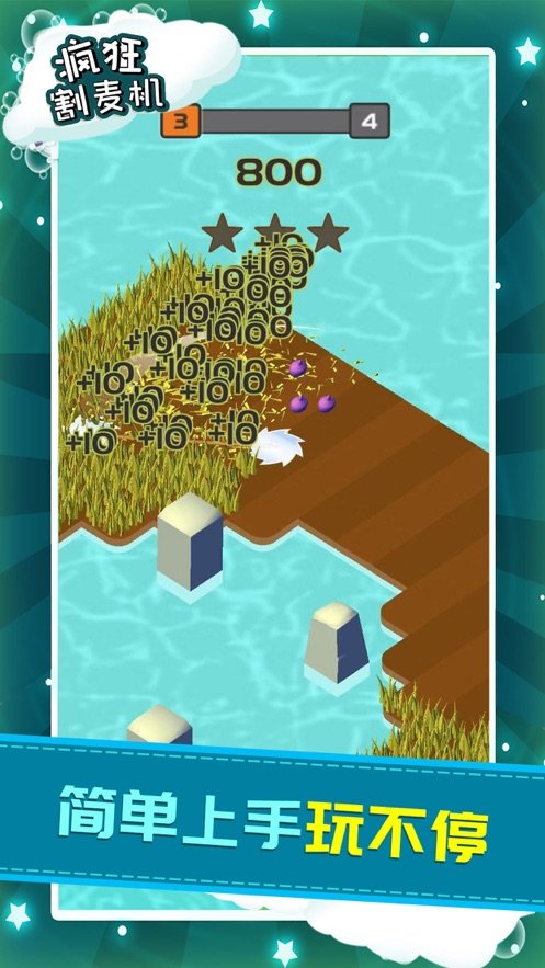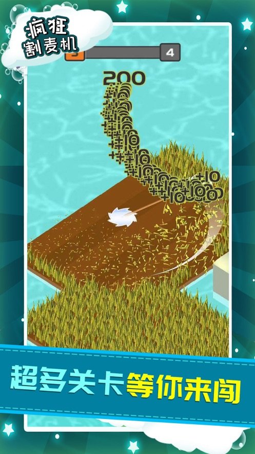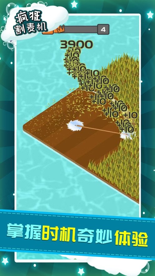 进入游戏后会发现两头都是割草片的物体,控制好进入草地或者是麦子地这样就能进行收割了,还有分数不停的冒出!