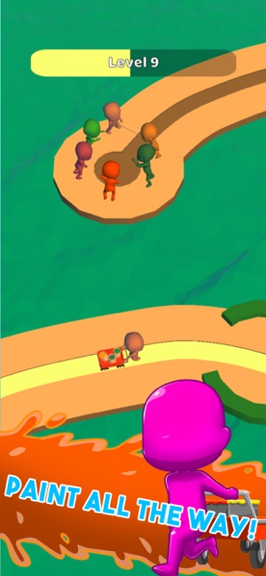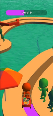 拉着小推车开始竞技比赛,穿过重重的障碍找到路边的家人相聚,进行颜料的补给,在确保自己颜料不洒的同时,第一个到达终点,给对手制造一些麻烦,快速超越,夺得胜利!