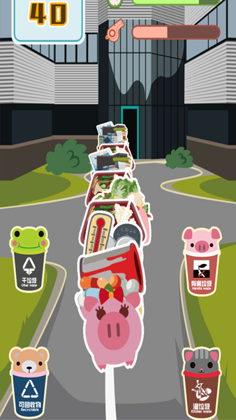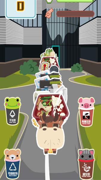 而垃圾桶分别对应干垃圾、湿垃圾、可回收垃圾和有害垃圾,游戏者必须眼疾手快,分门别类完成扔垃圾的动作。